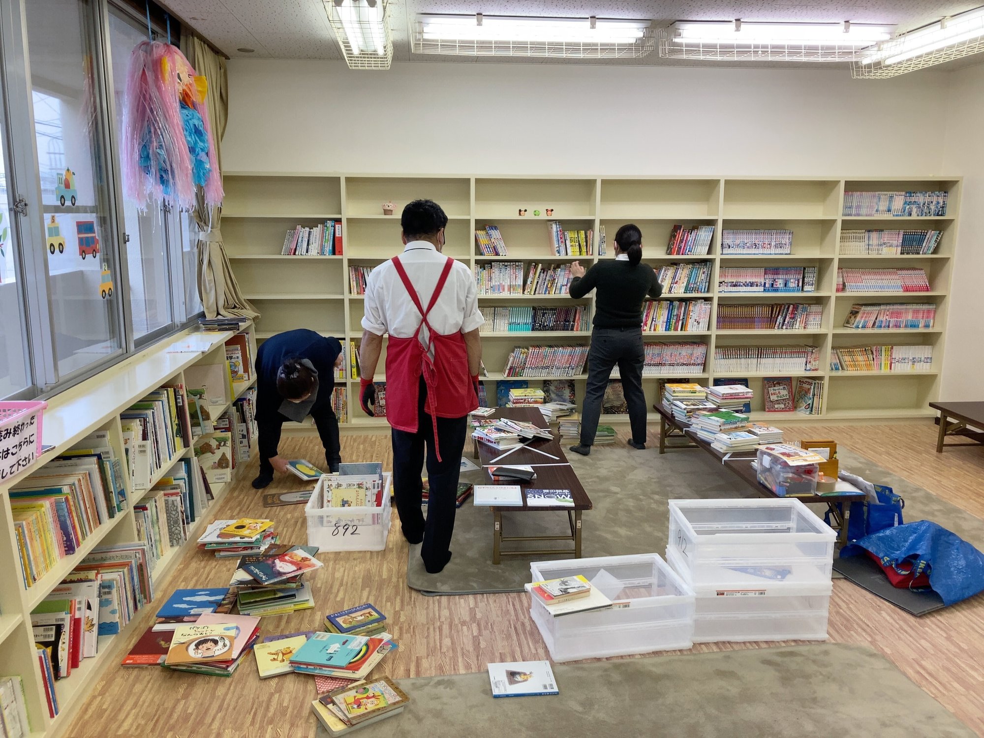 本を持ち運ぶ作業がありますので、動きやすい服装でお越しください。エプロンや手袋があると便利です。