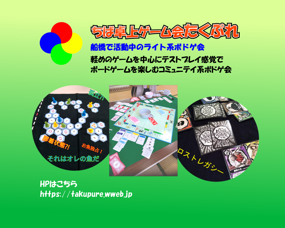 千葉県船橋市で定期的にボードゲーム会をしていますボードゲームサークルのたくぷれです♪