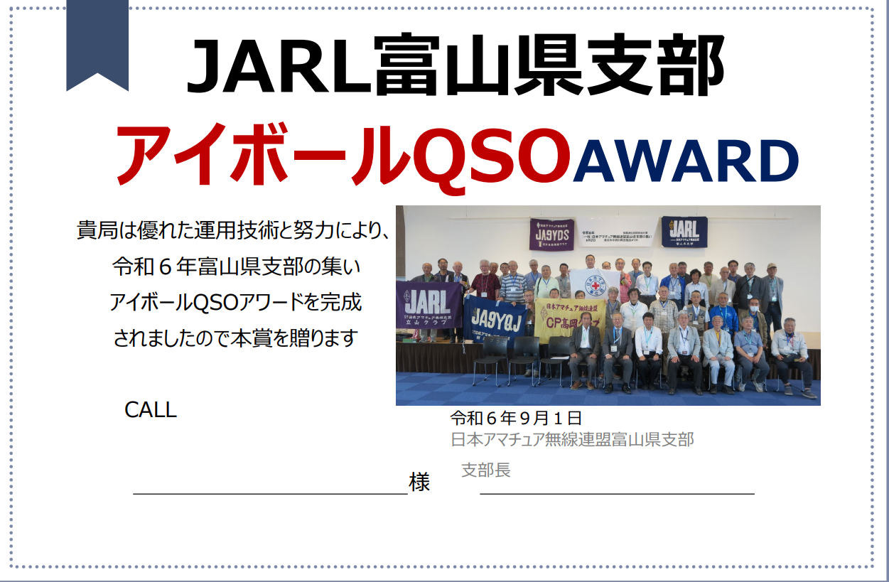 | 代表者 | (JARL富山県支部)高村 |
