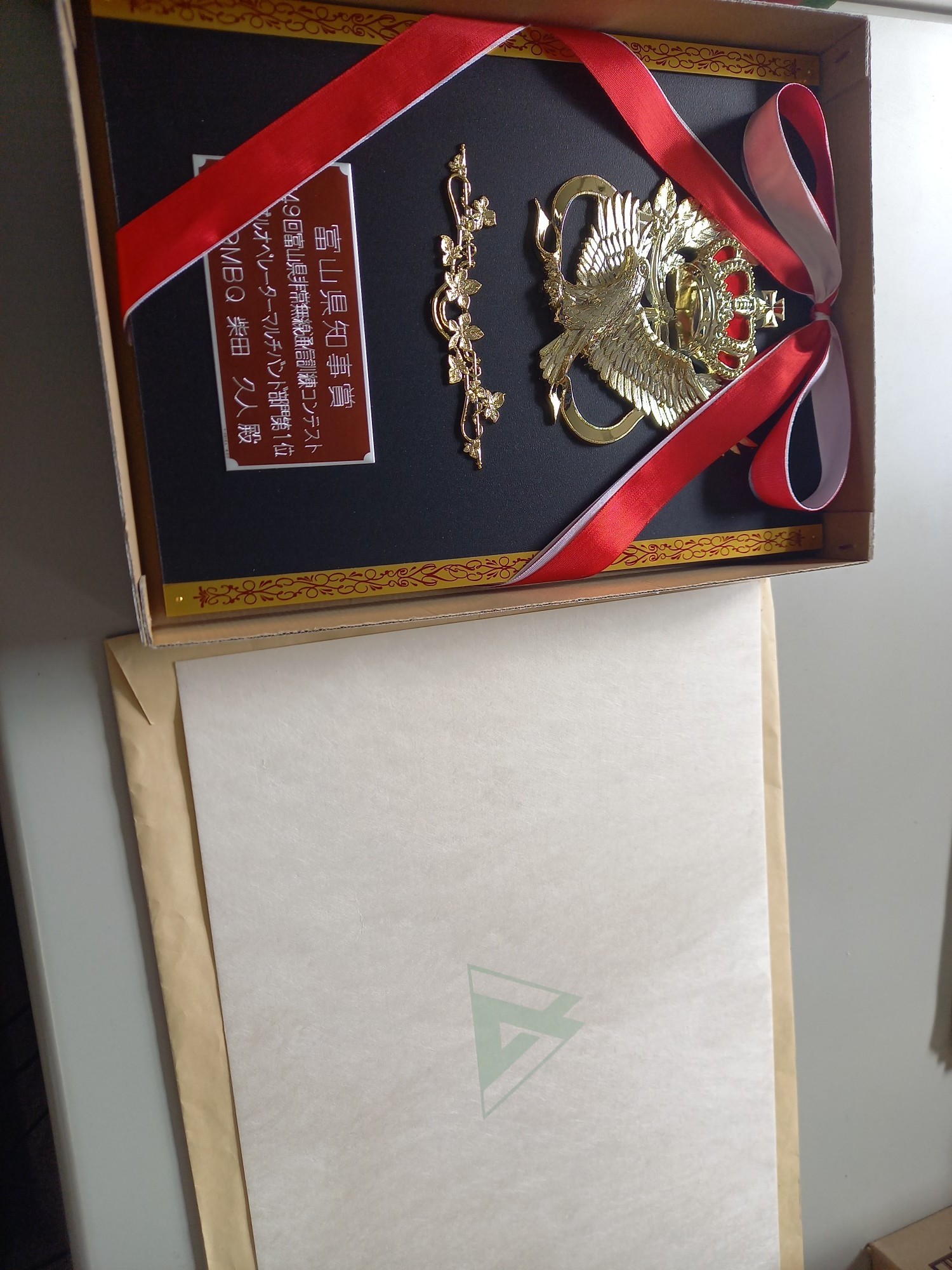3月2日(月)富山県庁・防災危機管理センターへ行き、第49回富山県非常無線通信訓練コンテスト・県知事賞(盾・賞状用紙)を預かりました。