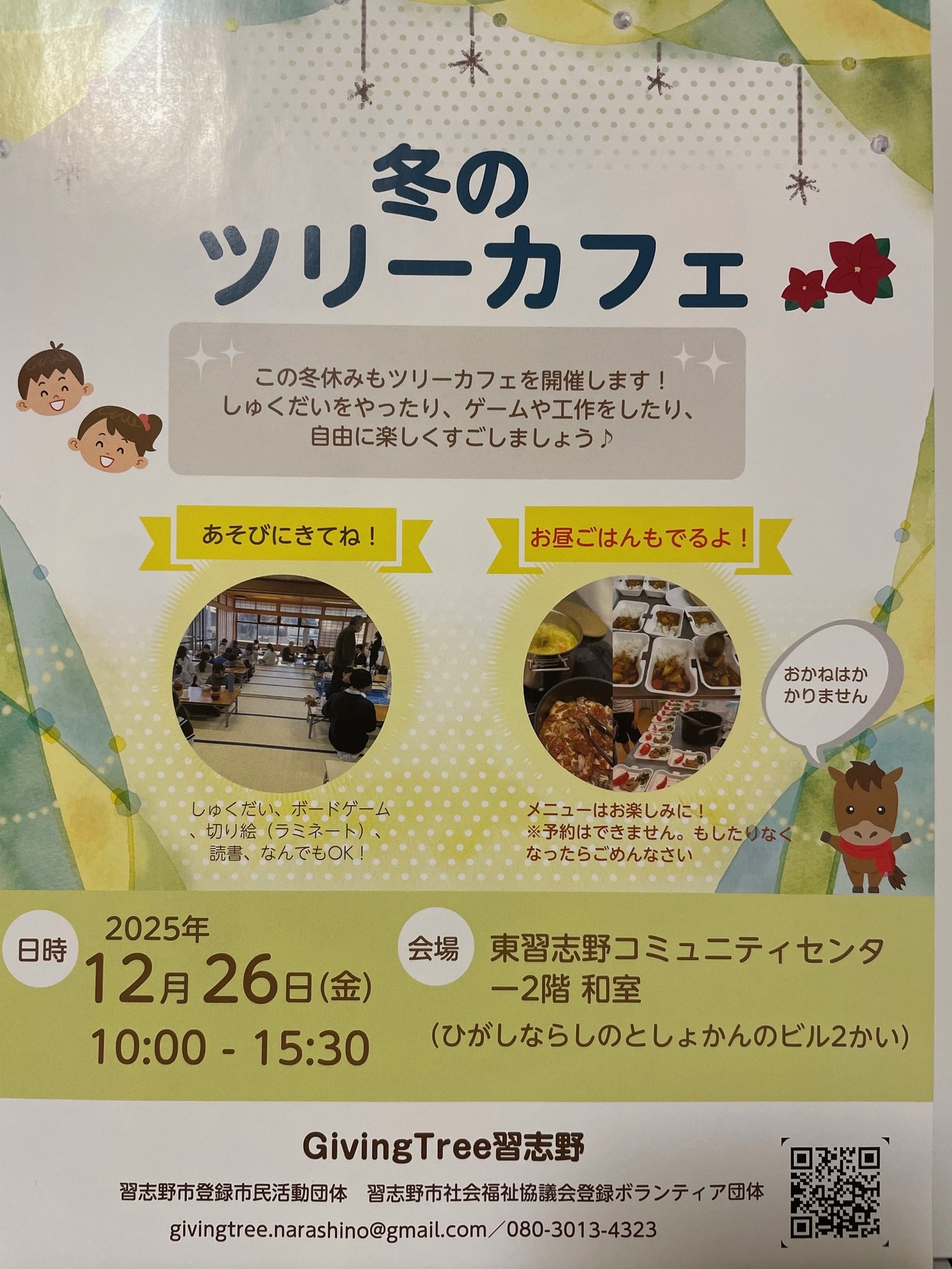 | コミュニティ名 | Giving Tree 習志野 (ギビングツリーならしの)★こどもカフェ★ ★フリースペース★ ★学習支援★ |