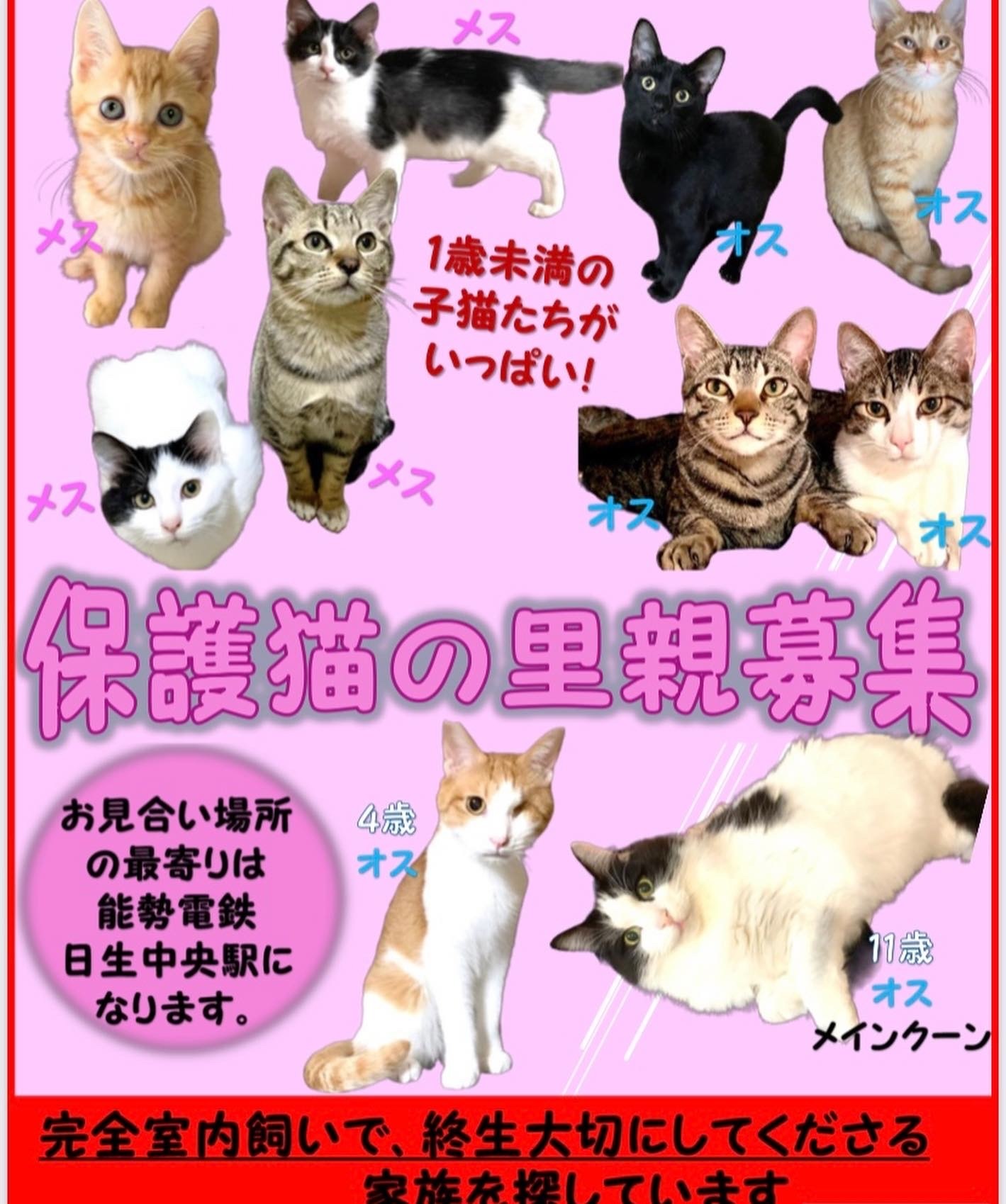 沢山の保護猫たちが参加します。是非、可愛い猫さんたちに会いに来てください!