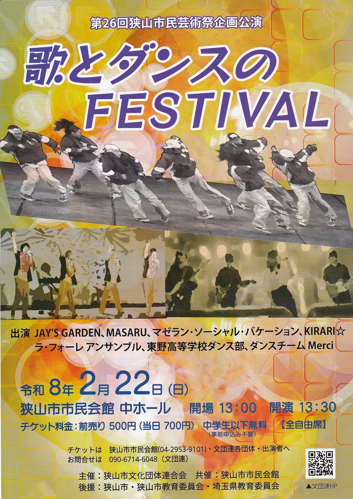 チケットは狭山市市民会館(04-2953-9101)・文団連各団体・出演者へ