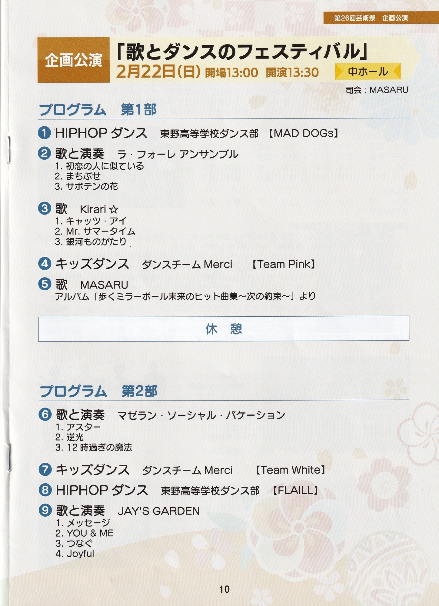 出演 JAY’SGARDEN、MASARU、マゼランソーシャルバケーション、Kirari☆、ラ・フォーレアンサンブル、ダンスチームMerci