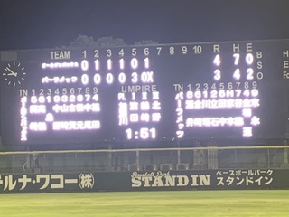 この先制点を皮切りに続く3回、4回にも1点ずつを挙げ、4回終了時点で 3 - 0とゴールデンバックスが試合を優位に進めます。