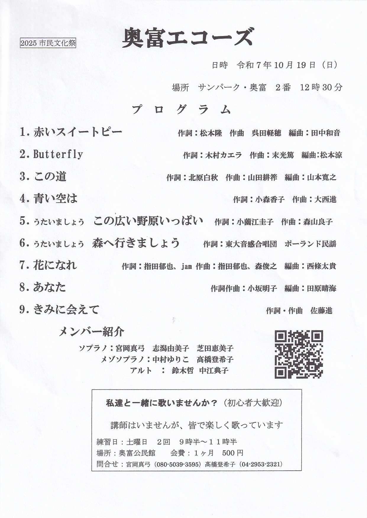 合唱:「奥富エコーズ」 12時30分~