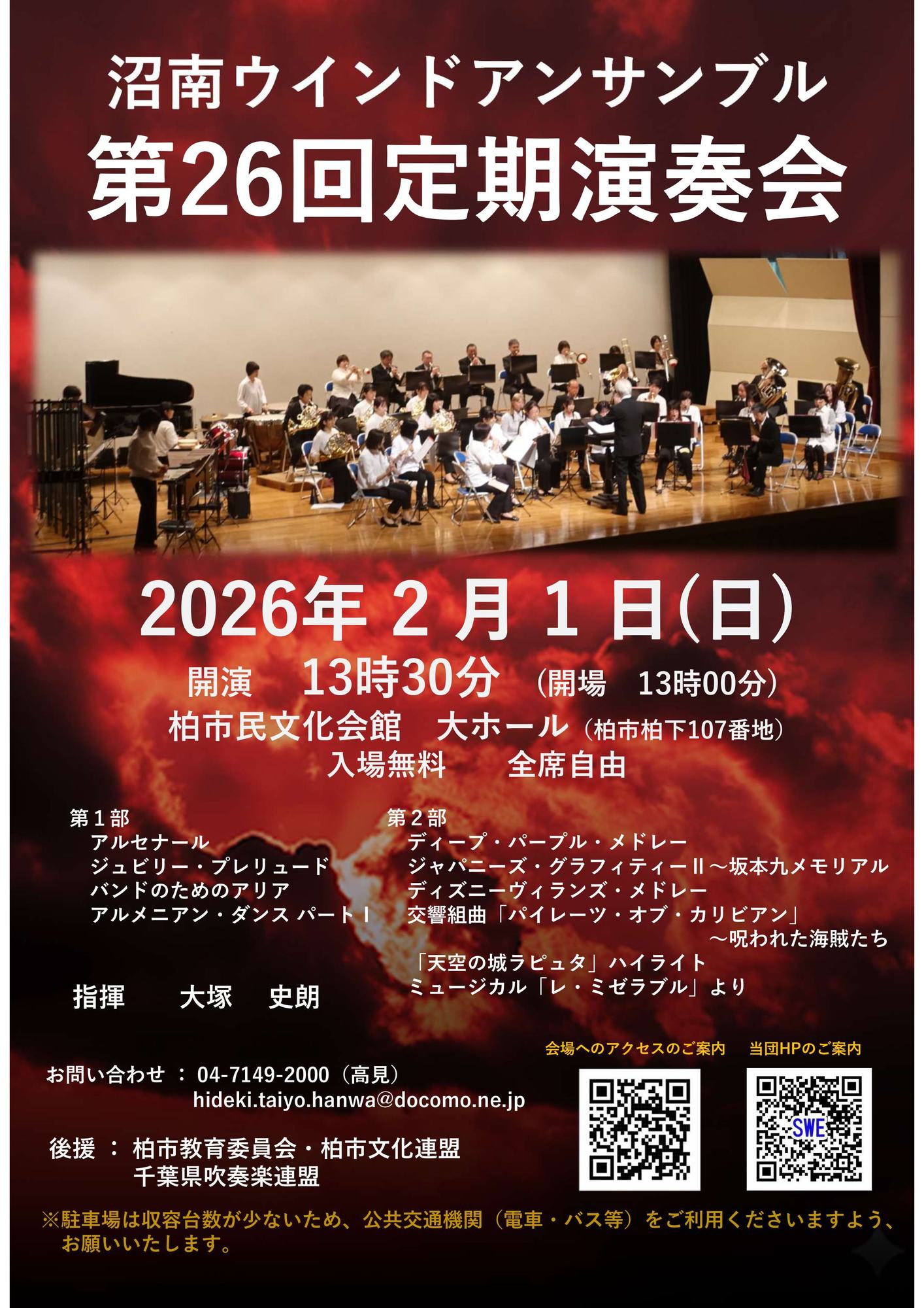 後援:柏市教育委員会・柏市文化連盟・千葉県吹奏楽連盟