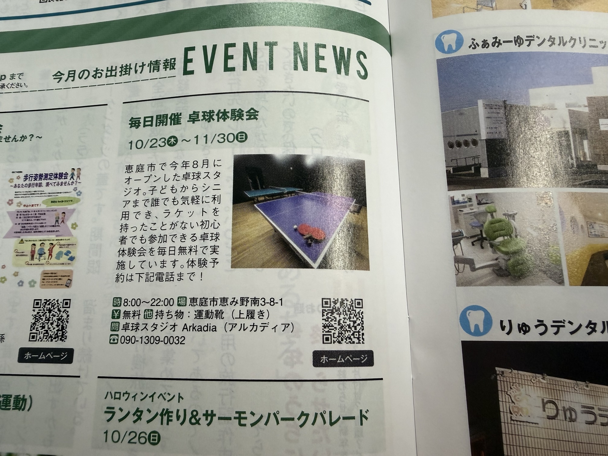 この度広報誌のAOに卓球スタジオアルカディアを掲載していただきました!