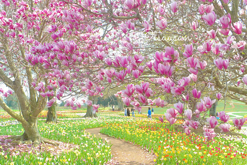 チューリップに紫木蓮のコラボ