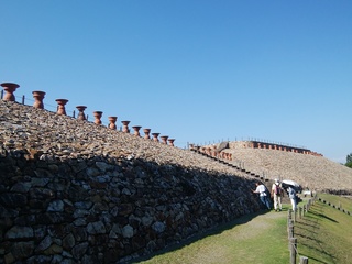 古墳表面の葺石は、8万個葺いてあり、1/3は古墳時代の石が残っていたので、裏に数字を書いて同じ場所に葺いていることをお伝えしました。