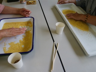 ↓友の会員さんが、【きび】の選別をしています。ありがとうございます。