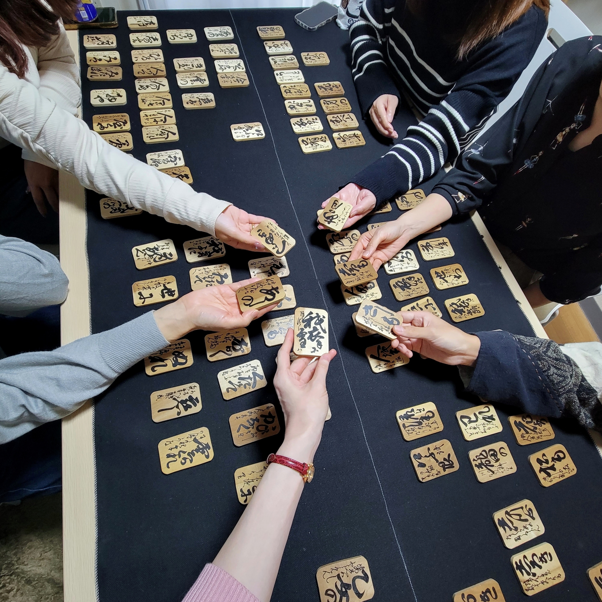 独特な文字の木札ですが遊んでいるうちに慣れてゆき徐々に素早く取れるようになります♪