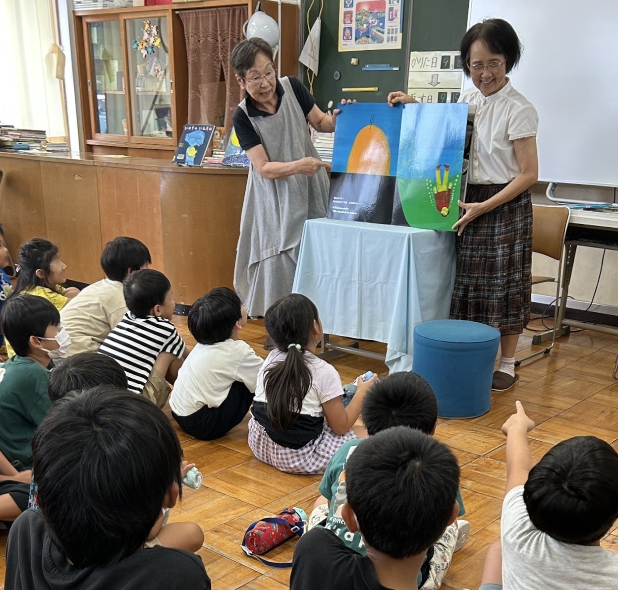 9月4日、2学期が始まったばかりの第1小でおはなし会をやりました。