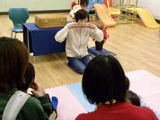 みんなで「だるまさんがころんだ」を楽しくやりました。ずっこけていた子もいましたよ。