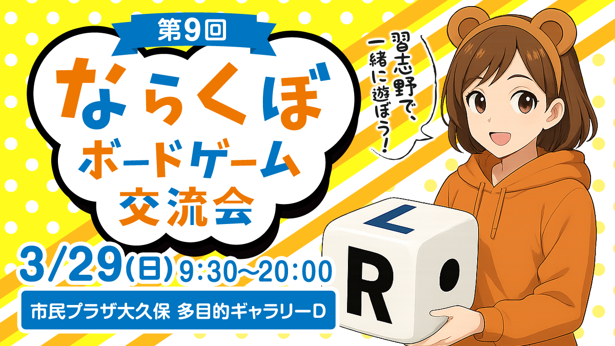 京成大久保駅ちかくで、ボードゲーム会を開催します。