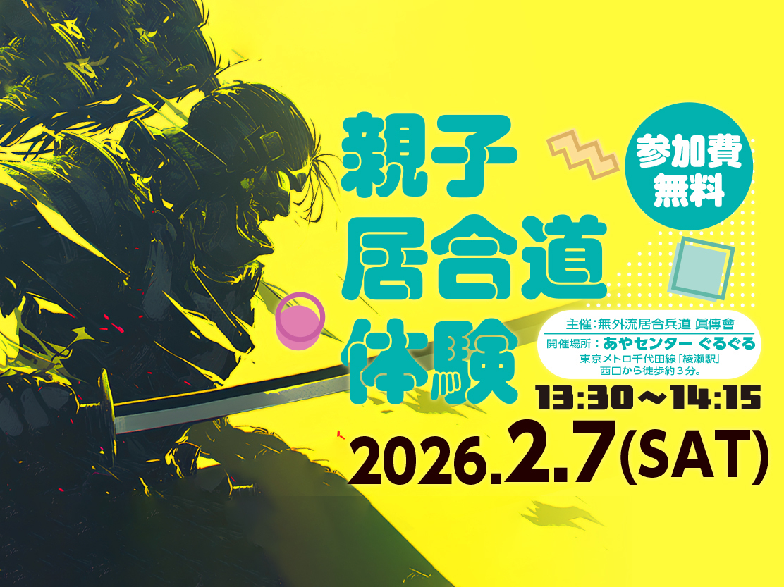 ※安全面の配慮のため本体験会では木刀もしくはおもちゃの刀を使用します。