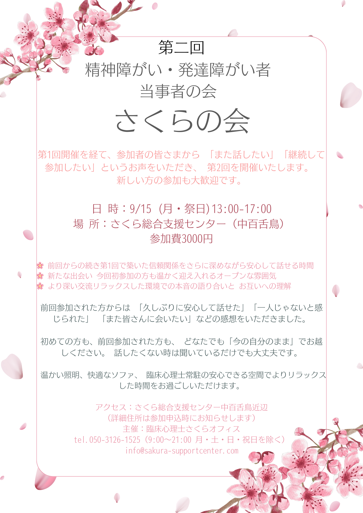 第二回精神障がい・発達障がい当事者の会「さくらの会」