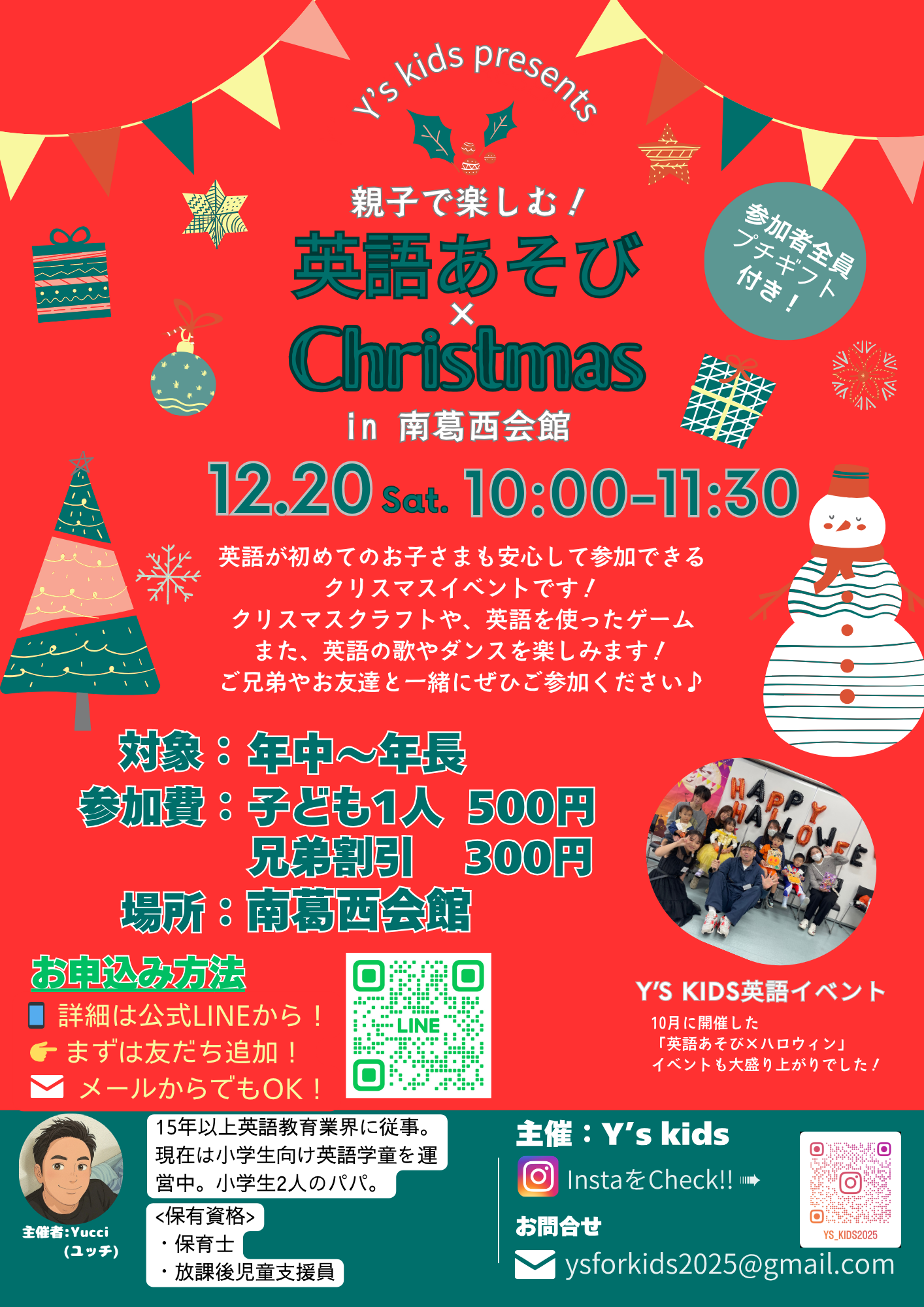 12月20日(土)に年中~年長さん向けの「英語あそび×クリスマス」イベントを主催する