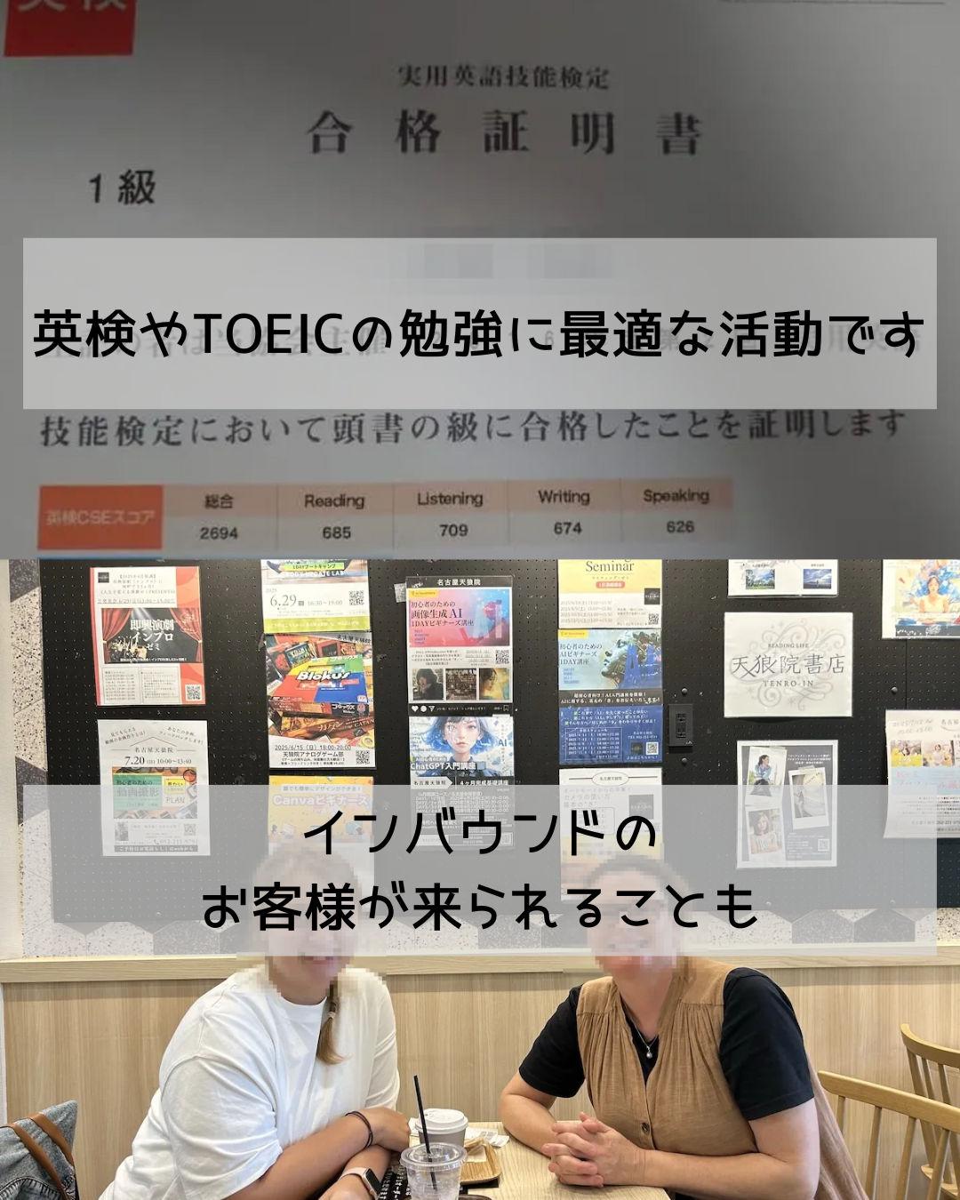 名古屋のカフェで英会話サークルを開催しています。主催者は英検1級を取得していますが、英語学習を継続しています。ガチの英語学習仲間を募集中です。くわしくは公式サイトを確認ください。