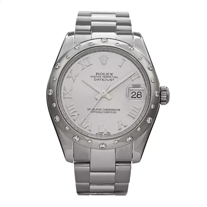 デイトジャストのインデックス部分には、ダイヤが使用されているタイプがあります。本物のダイヤと偽物のダイヤでは、光に照らされたときの輝きが大きく異なります。