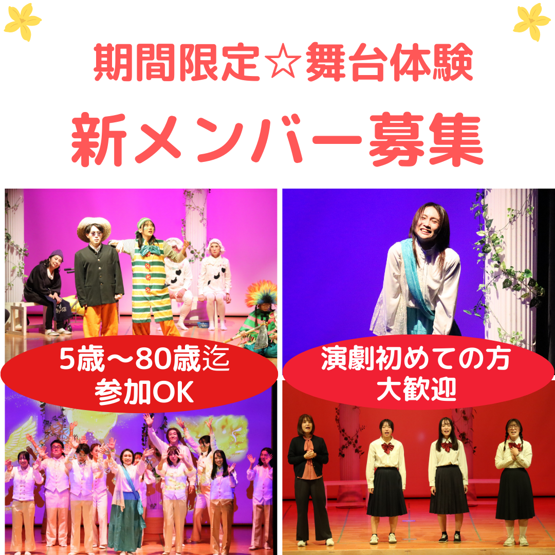 演劇初心者歓迎(5歳~80歳迄参加OK)期間限定劇団(約8カ月~10ヵ月)