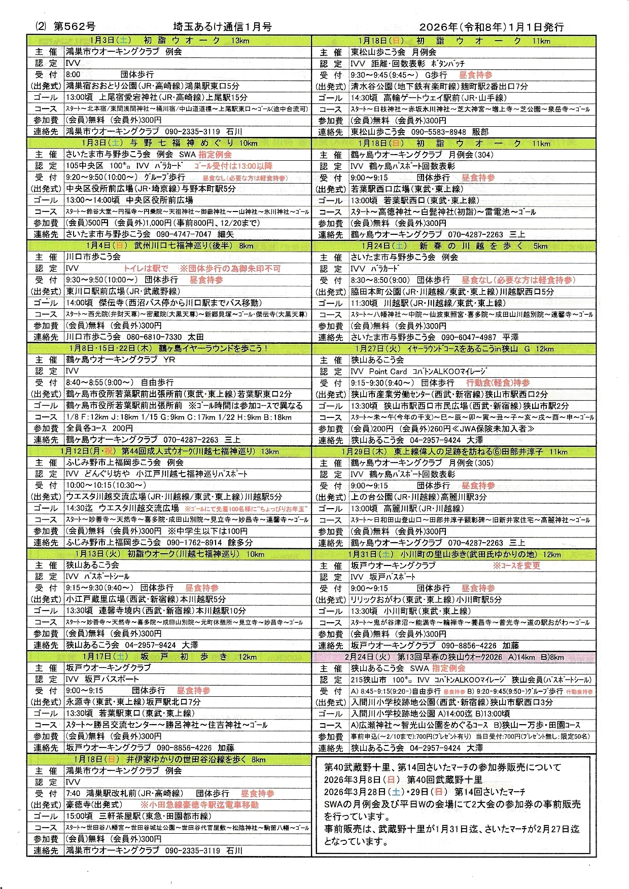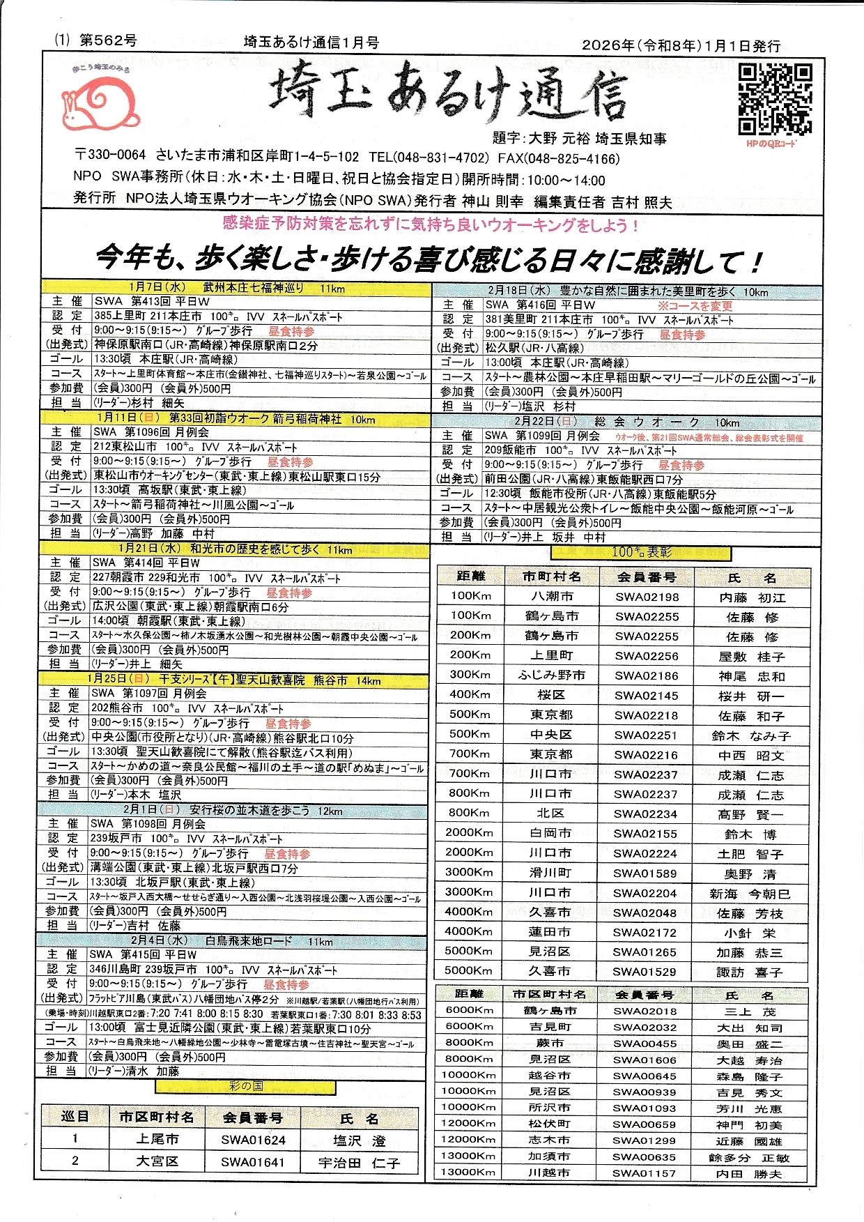 | コミュニティ名 | NPO法人埼玉県ウオーキング協会(SWA) |
