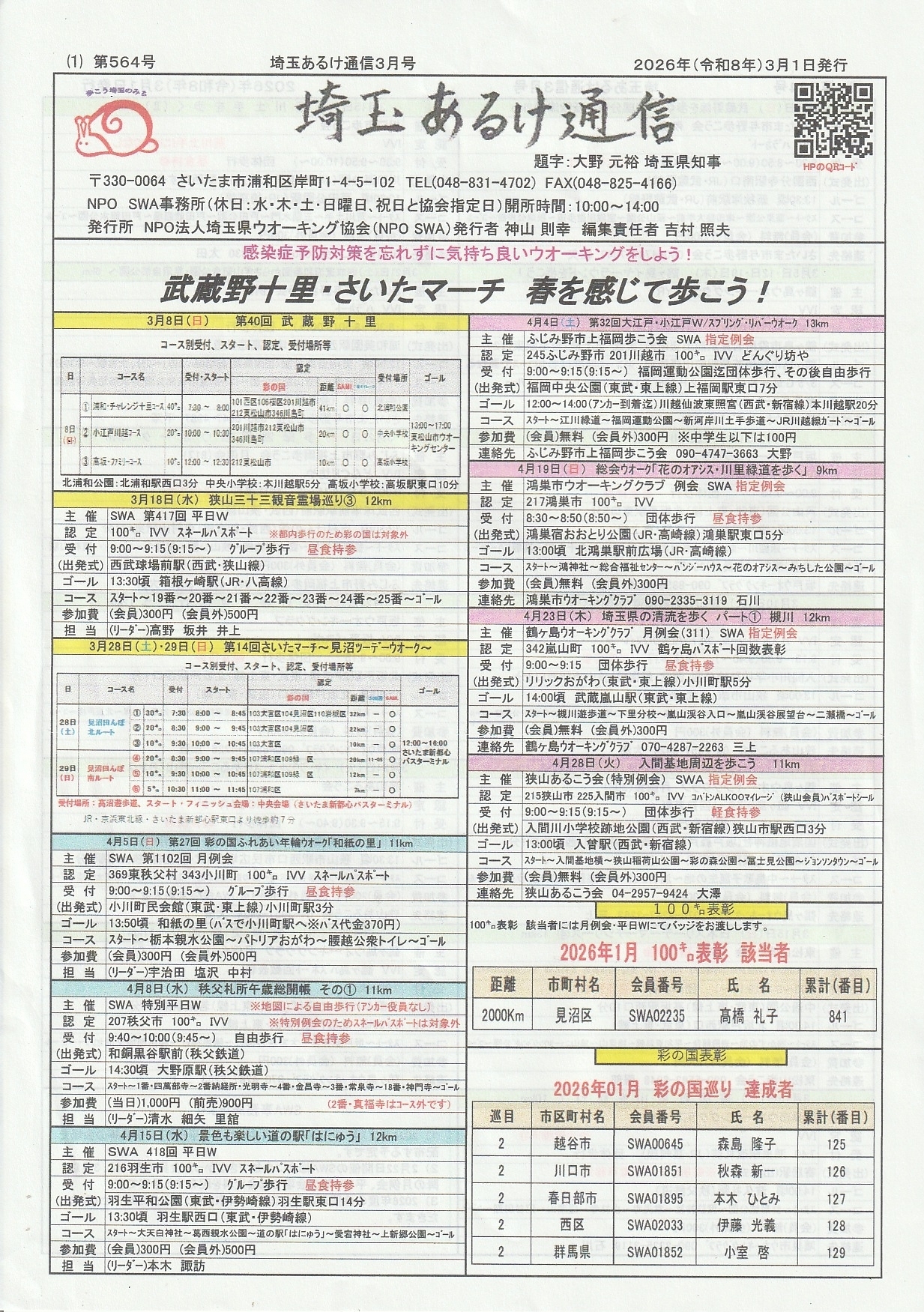 | コミュニティ名 | NPO法人埼玉県ウオーキング協会(SWA) |