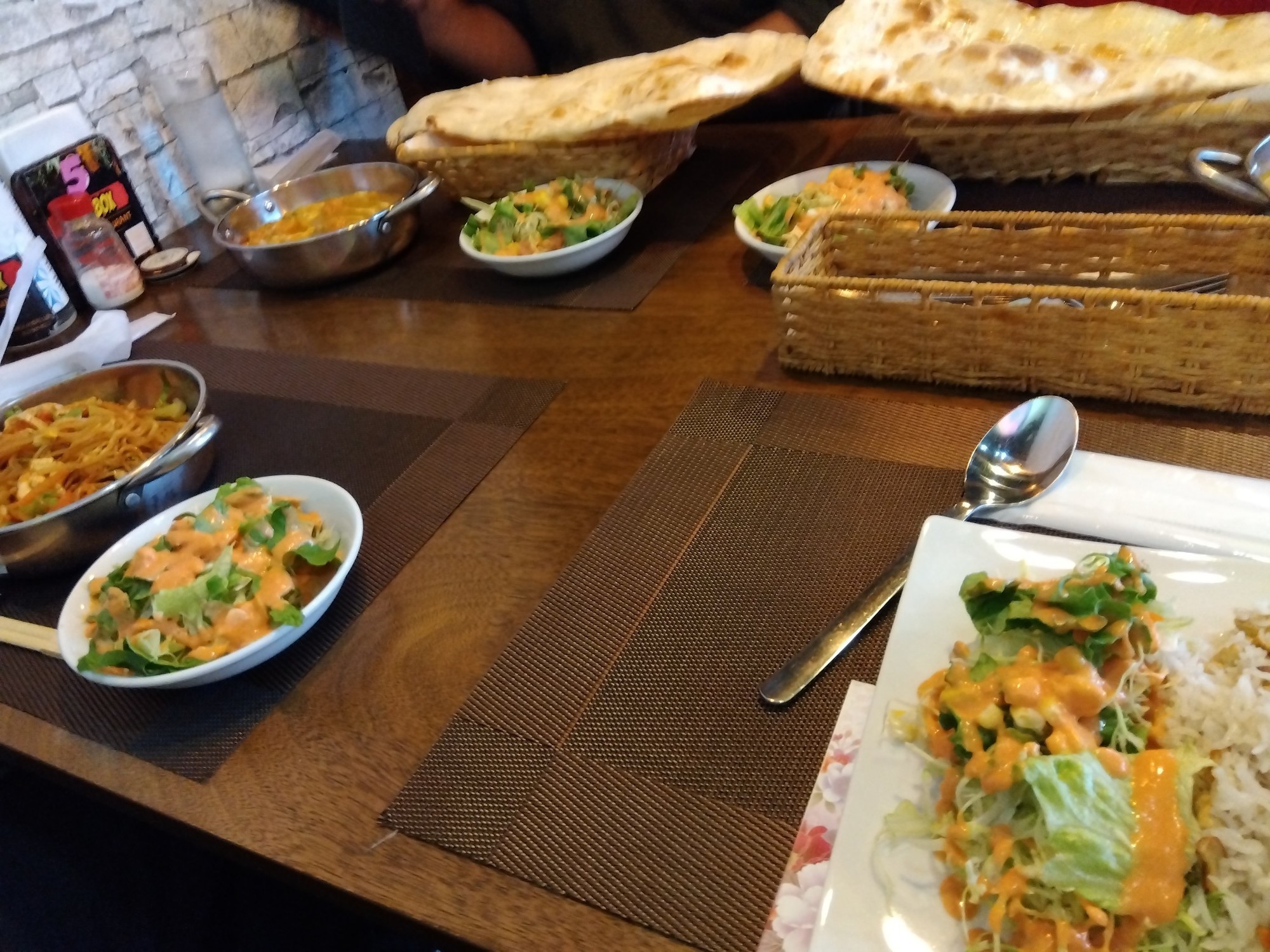感想など:皆さん、それぞれのメニューを注文しました。焼きそば、カレー、ライスセットなどを注文しました。量は結構多めだという感想を持った方が多かったです。確かに、カレーの量もナンの大きさもかなりの充実具合でした。焼きそばはそれほど辛くなかったようです。ライスは炒められていて、脂が乗っていて美味しかったです。