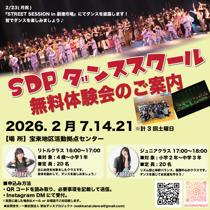 SDPダンススクール、『無料体験会』のご案内です✨
