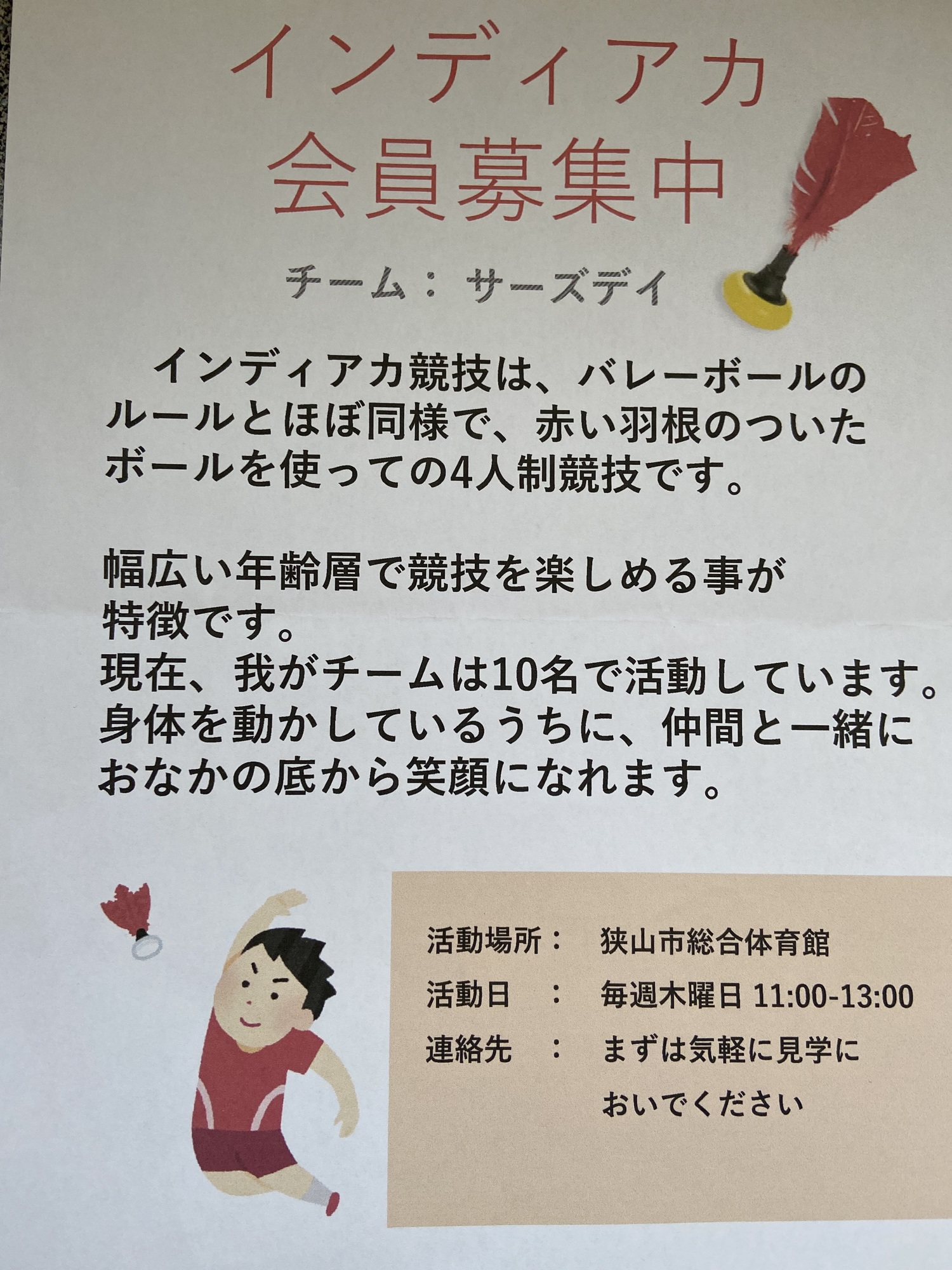 | 主な活動場所 | 狭山市市民総合体育館 |