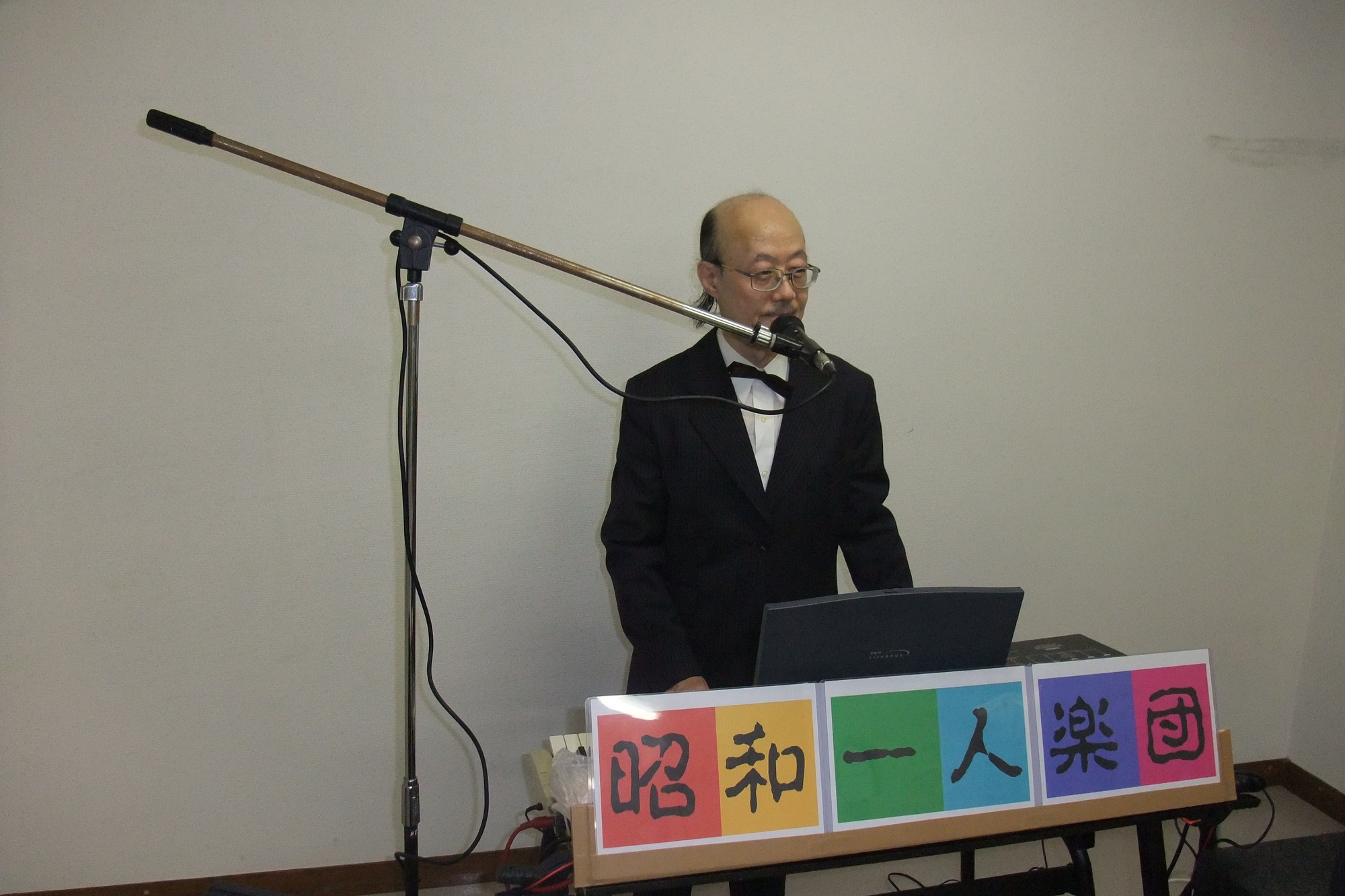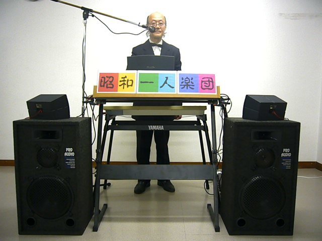 楽器音響機材一式(約10個)を車で持ち込み、世界唯一”20人楽団相当の迫力で多彩な一人生演奏”をお楽しみいただいています。ボランティア演奏ですが運搬費用5千円のご負担と駐車場をお願いしています。