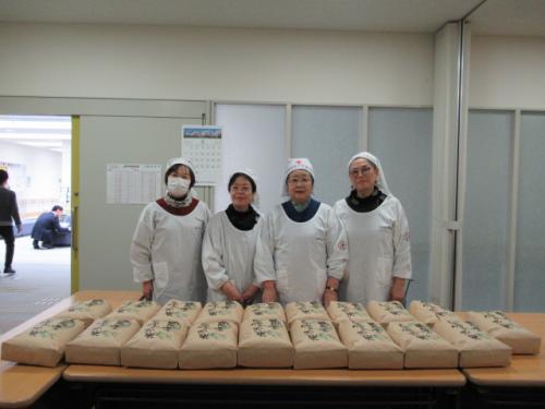 越前市赤十字奉仕団は、お米の仕分や梱包を担当し、ボランティア精神のもとお手伝いができればと思い参加を決めました。同奉仕団には、越前市17地区に分団があり、各地域において、気がかりな世帯等を関係機関に繋ぐ役割も担っていけるという思いもあり、今後も協力していきます。